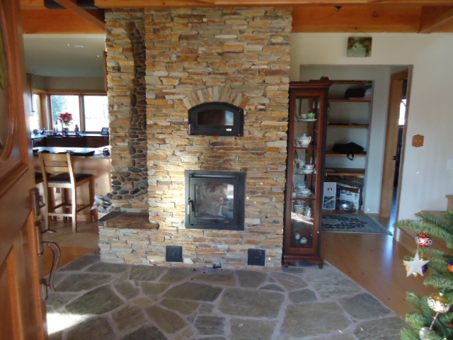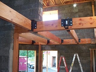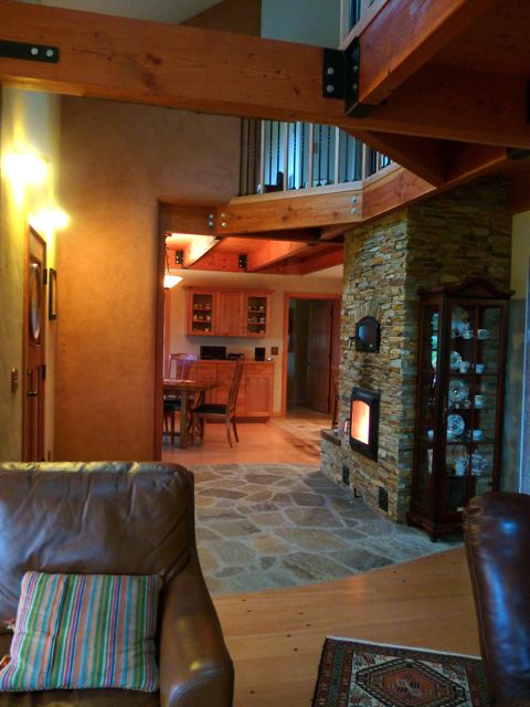 This home was designed to be built using many green materials and for high energy efficiency. The exterior walls use the locally produced ICF product "FASWALL". These walls are 12" thick and use recycled wood chips and concrete instead of styrofoam for the form. A concrete wall is then poured in the voids of the form blocks providing an insulation value of R25 or better.